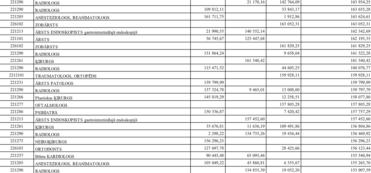 Bet kāds ir padomājis, ka šeit ir publicētas 5% ārstu algas, jo Latvijā ir apmēram 7000 ārstu? Nav objektīvi tagad cepties par 5%. Es drīzāk gribētu redzēt visu sarakstu, jo tad varētu spriest objektīvāk. Varbūt lielāka daļa saņem 24 000 gadā?