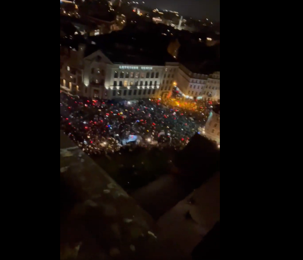 Doma laukumā protestā pret Latvijas izstāšanos no Stambulas konvencijas ceturtdienas vakarā pulcējušies vismaz 10 000 cilvēku, liecina Valsts policijas aplēses.
