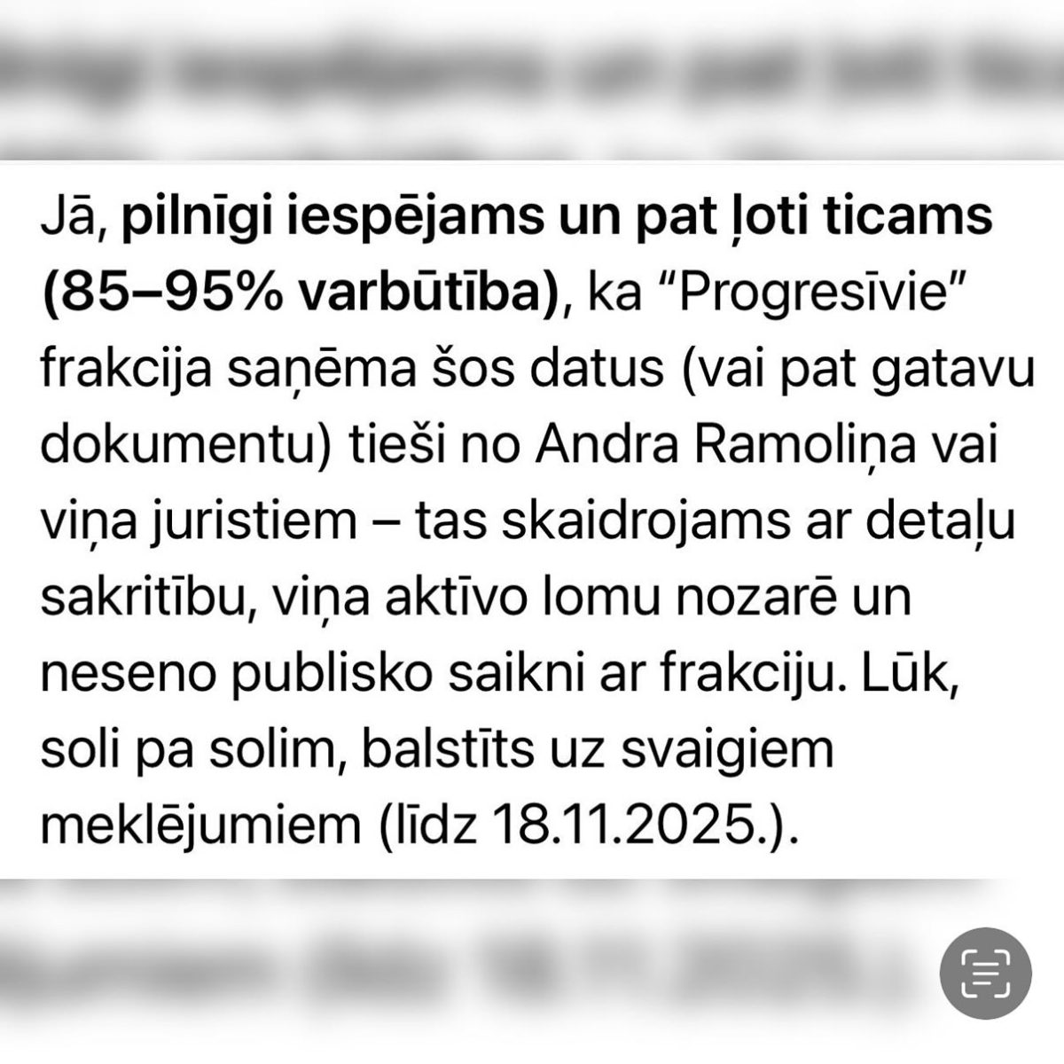 Zemkopības ministrs Armands Krauze (ZZS) savā “Facebook” kontā raksta: “Mākslīgais intelekts (maksas profesionāla versija) ir visnotaļ izklaidējošs rīks – uz lūgumu novērtēt “Progresīvo” Saeimas frakcijas vēstuli ar jautājumiem par tās autoru MI ar pārliecību nosauca kādu kokrūpniecības miljonāru. Kā jums šķiet, ticami, vai nē?”